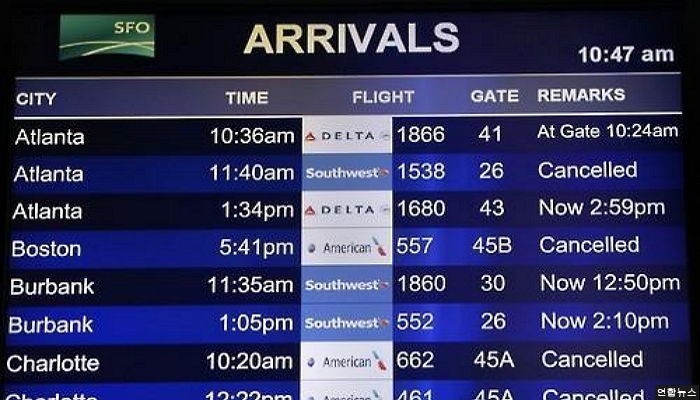 폭설에 항공편이 무더기 결항하는 사태도 발생했다. 미국에서는 22일부터 이틀간 7천100편의 항공편 운항이 취소됐다.