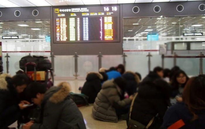 갑작스러운 폭설과 난기류 현상으로 인해 전날에 이어 이날 낮 12시까지 제주공항 내 항공기 운항이 전면 중단됐다.