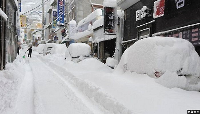 울릉도에 6일간 100㎝의 눈폭탄이 쏟아져 주민들이 눈과의 힘겨운 싸움을 하고 있다.