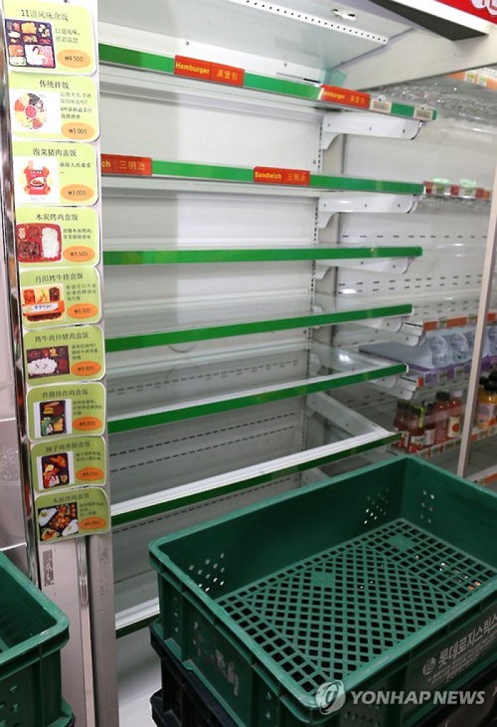 이에 제주공항에 체류 중인 관광객들이 공항 내 마련되어 있는 편의점을 이용하면서 현재 신선식품과 과자 등 진열대에 배치된 식품이 모두 바닥난 상태다.
