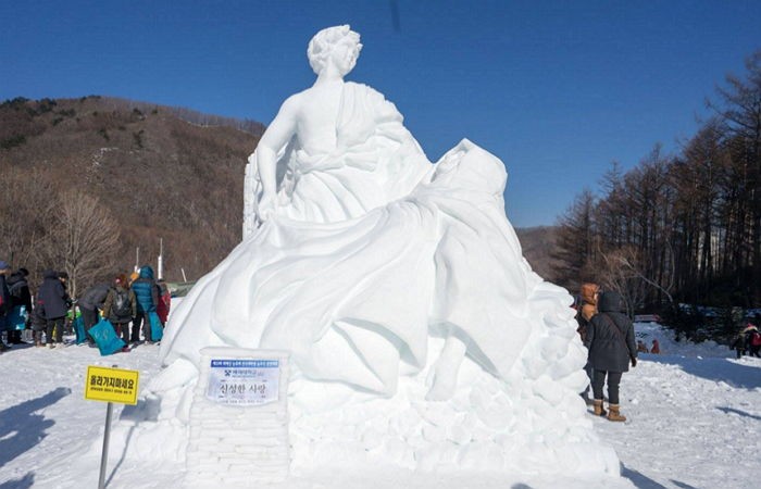 26일 태백산 눈 축제 페이스북 공식 페이지에는 태백산 눈 축제 현장을 화려하게 장식하고 있는 조각상들의 사진이 올라왔다.