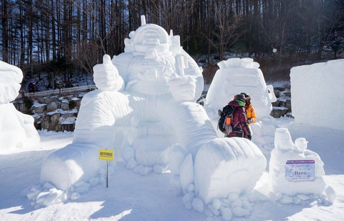 보면 볼수록 빠져들게 만드는 태백산 눈 축제 속 화려하고 멋진 조각품들의 사진을 소개한다.
