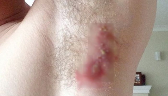 그는 "겨드랑이에서 불이 나는 것 같았다"면서 온통 딱지로 얼룩진 당시 자신의 겨드랑이 사진을 공개했다.