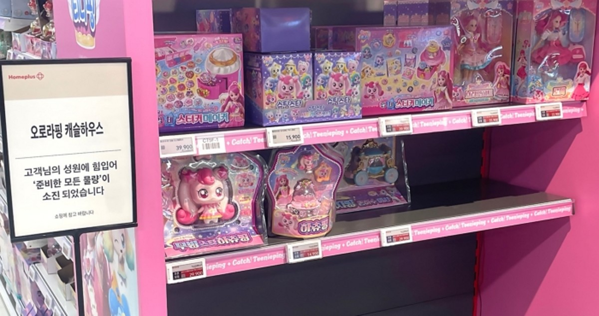 여아들에게 특히 인기가 좋은 '캐치! 티니핑' 장난감 물량을 다수 확보해 판매한 홈플러스가 전년 동기 대비 완구류 매출에서 좋은 기록을 냈다.