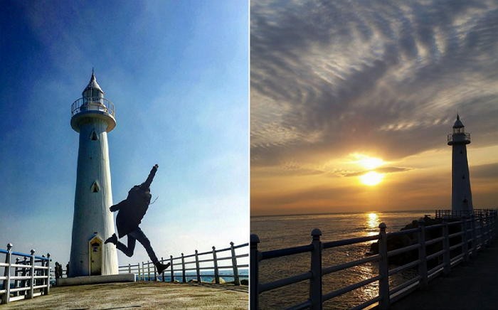 방파제와 어우러진 하얗고 빨간 쌍둥이 등대가 묘한 대조를 이루고 있어 어디서든 '인생 사진'을 연출하기에 좋다.