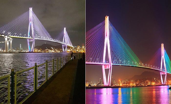 다리를 수놓은 화려한 조명 불빛이 어두운 도시를 찬란하게 비추고 있어 시원한 밤바람과 함께 조용히 야경을 즐기기에 최적하다.