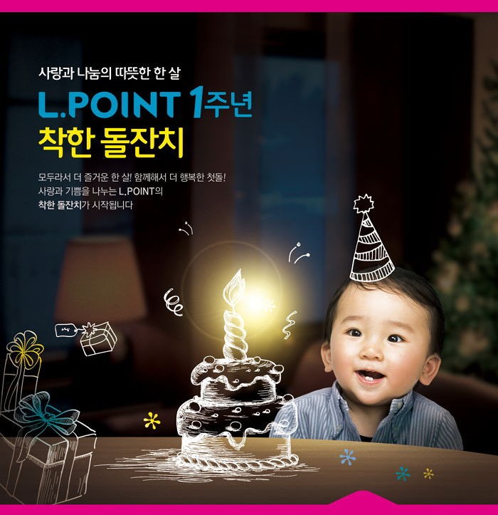1주년 생일을 맞이한 L.POINT에서 형편이 어려운 아이들에게 돌잔치를 지원해주는 '착한 돌잔치 이벤트'를 실시한다.