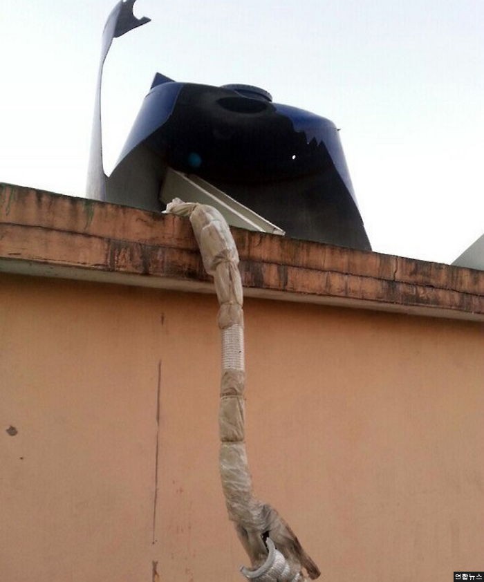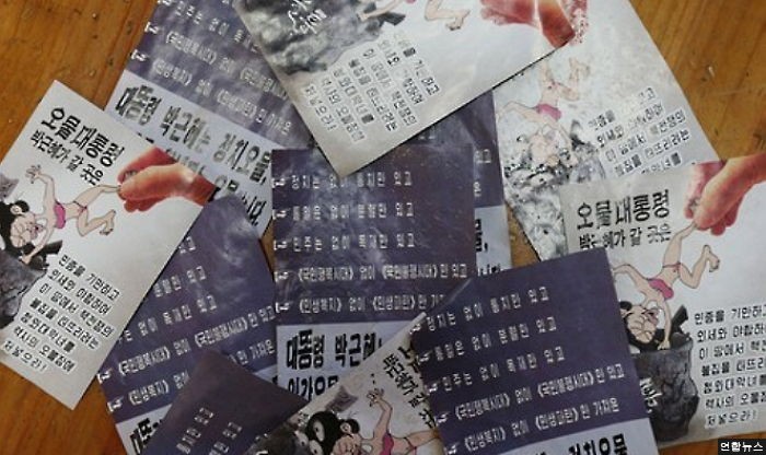 <대남 선전용 전단지와 이로 인해 파손된 물탱크>