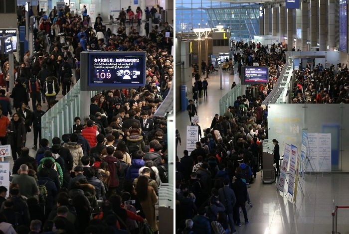 대체공휴일제 시행으로 최대 5일까지 쉴 수 있는 황금 같은 '설 연휴'를 앞두고 지금 이 시각 현재 인천공항에 수많은 인파가 몰렸다.