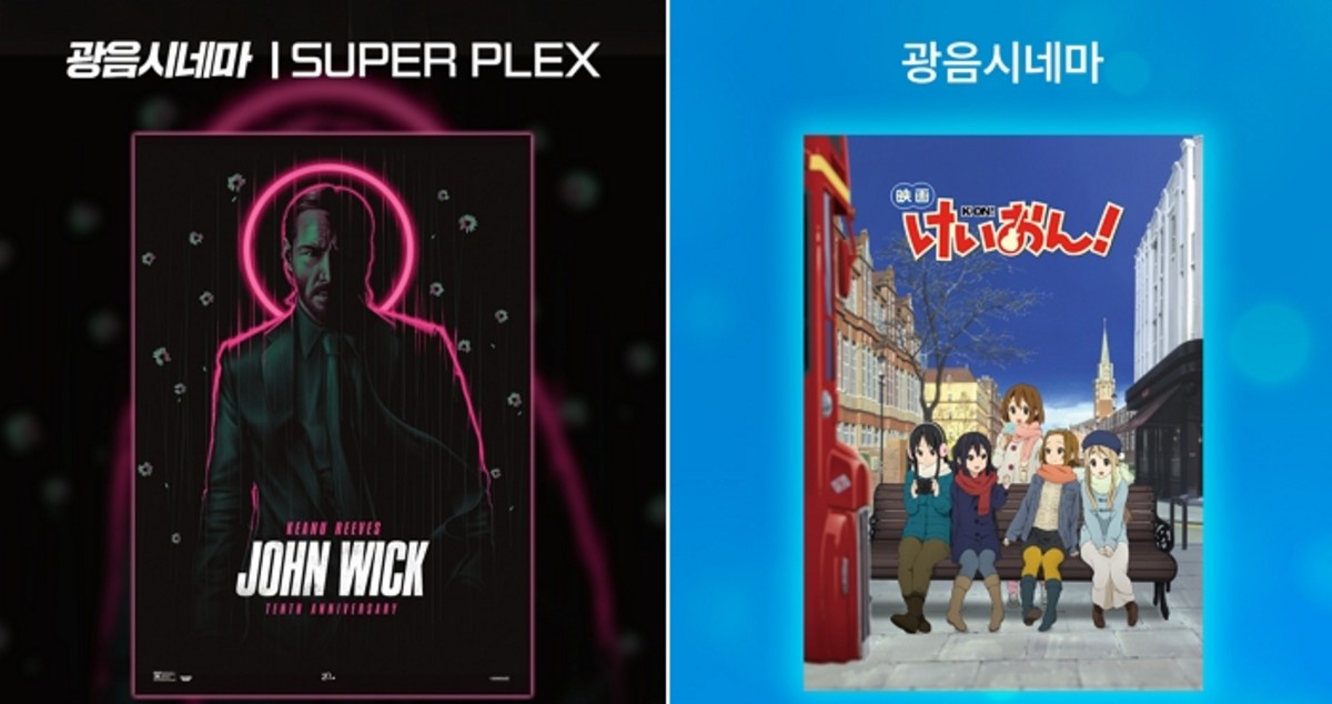 롯데시네마가 다양한 콘텐츠 경험을 제공하기 위해 시그니처 액션 영화 <존 윅>과 걸스 밴드 애니메이션 <케이온>을 스페셜관에서 상영한다.