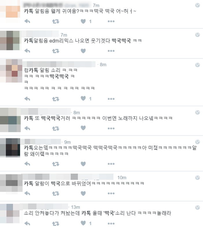 <현재 카톡 알림음에 대한 트위터 반응들>