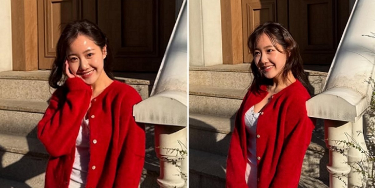 사진 속에서 그녀는 빨간 가디건과 치마를 입고 환한 미소를 지으며 눈길을 끌었다. 뚜렷한 이목구비와 발랄한 매력이 돋보이는 모습이었다.