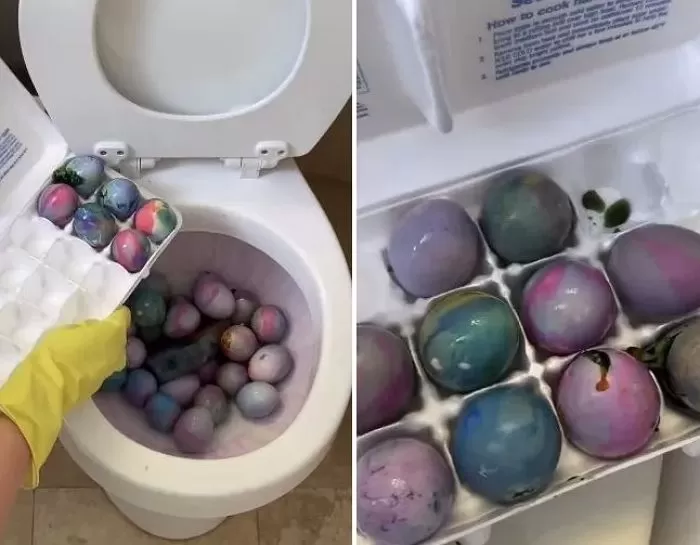 부활절 달걀 변기에 넣어 염색한 미국 여성