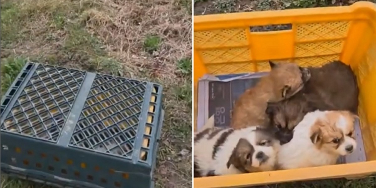 한 과수원에서 플라스틱 박스에 담겨 유기된 생후 2개월 수준의 어린 강아지들이 발견됐다.