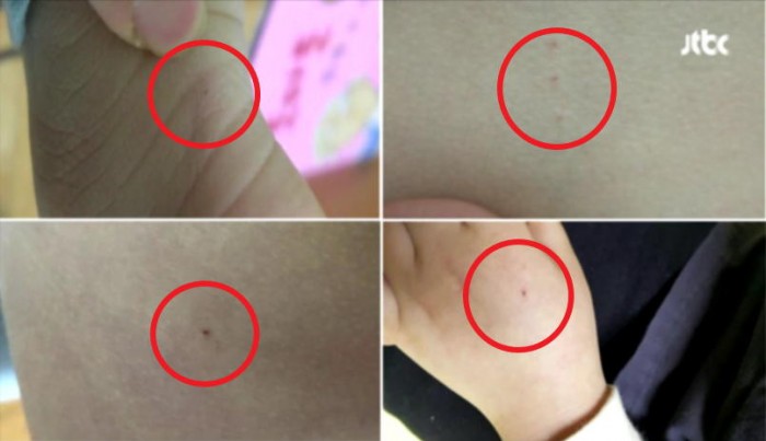보도에 따르면 3살짜리 어린이들의 손등과 발 뒤꿈치, 아랫배 등에 날카로운 물체에 찔린 것으로 보이는 상처가 발견됐다.