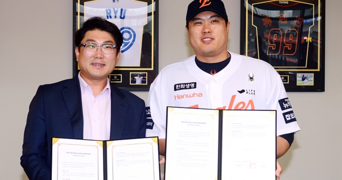 류현진재단은 지난 1일 대전 한화생명 볼파크 내 재단 스카이박스에서 벨라 골프앤리조트와 협약을 체결했다고 밝혔다.