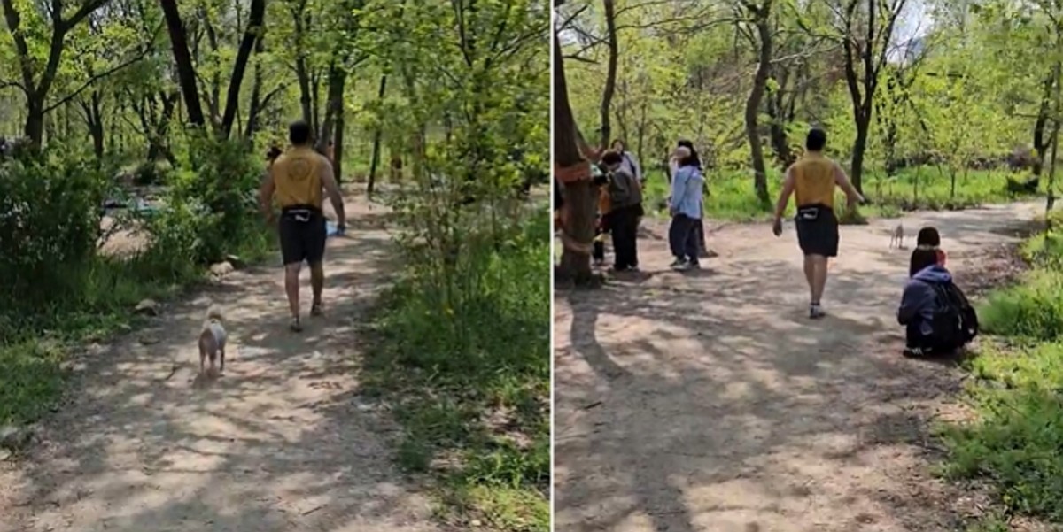 이날 오전 반려견과 함께 여의도 샛강으로 산책을 나갔다는 작성자 A씨는 "요즘 날도 따뜻하고 숲길이 너무 좋아서 그런지 근처 유치원 아이들 2~30명이 야외 수업을 하고 있더라"고 운을 뗐다.