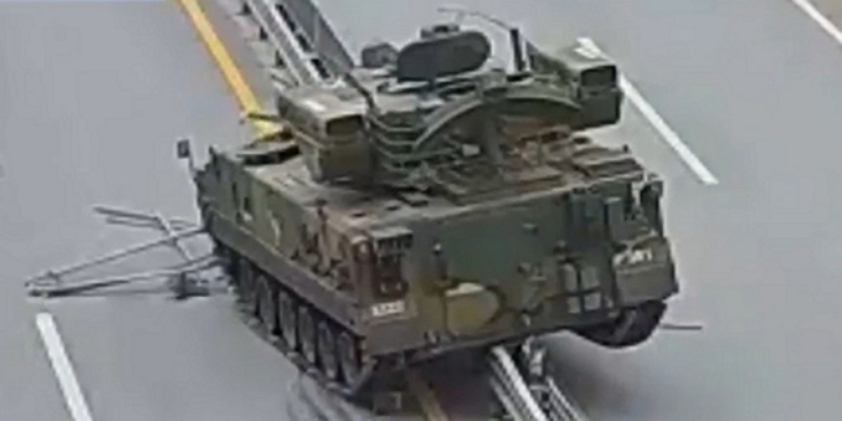 충북 충주의 한 국도에서 육군 장갑차가 중앙분리대를 들이받고 올라타는 사고가 발생했다.