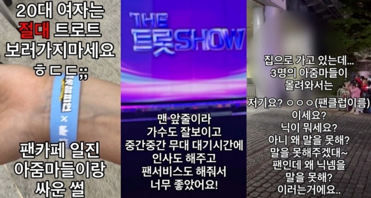 트로트 방청 간 20대 여성, 가수와 대화했다는 이유로 중년 팬클럽에 혼쭐