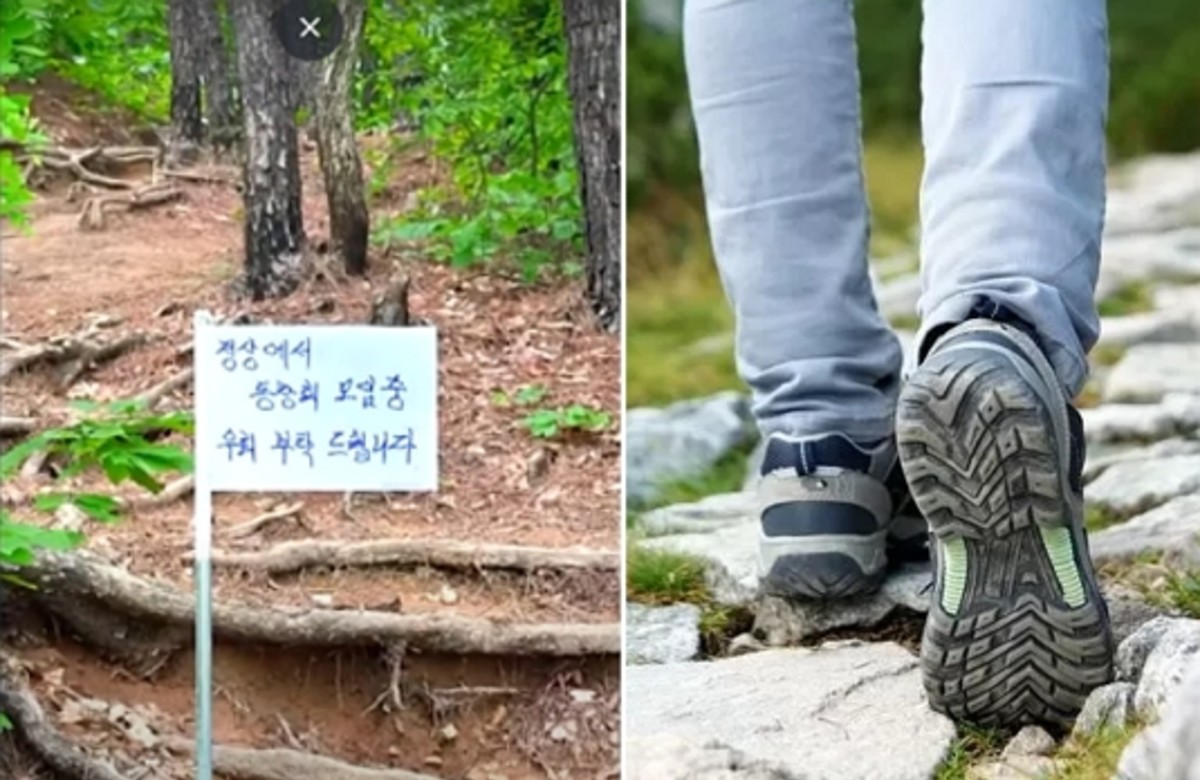 A씨는 "최근 포천시 한 호수공원 둘레길에 이어진 등산로에 갔는데 팻말이 하나 설치돼 있었다"며 "팻말에는 '정상에서 동창회 모임 중이니 우회하라' 내용이 적혀있었다"고 말을 꺼냈다.
