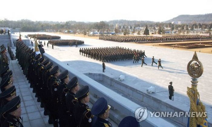 중앙통신은 이날 "광명성절을 맞으며 위대한 김일성 대원수님께와 김정일 대원수님께 경의를 표시하며 경애하는 김정은 동지께 충정을 맹세하는 조선인민군 육군, 해군, 항공 및 반항공군 장병들의 예식이 14일 금수산태양궁전 광장에서 진행되였다"고 밝혔다.