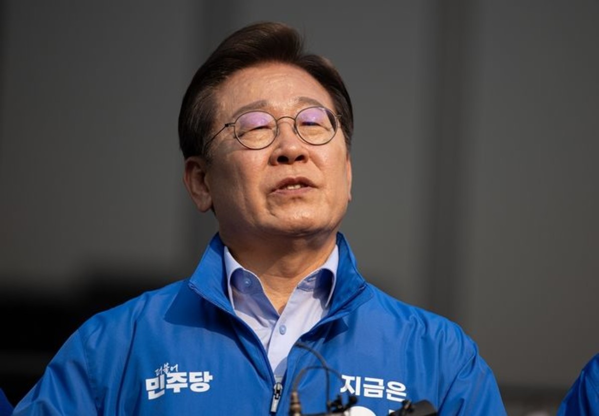 이재명 더불어민주당 대통령 후보가 30일 오후 강원 원주시 반곡동 원주행복마당에서 시민들에게 지지를 호소하고 있다. 2025.5.30 / 뉴스1