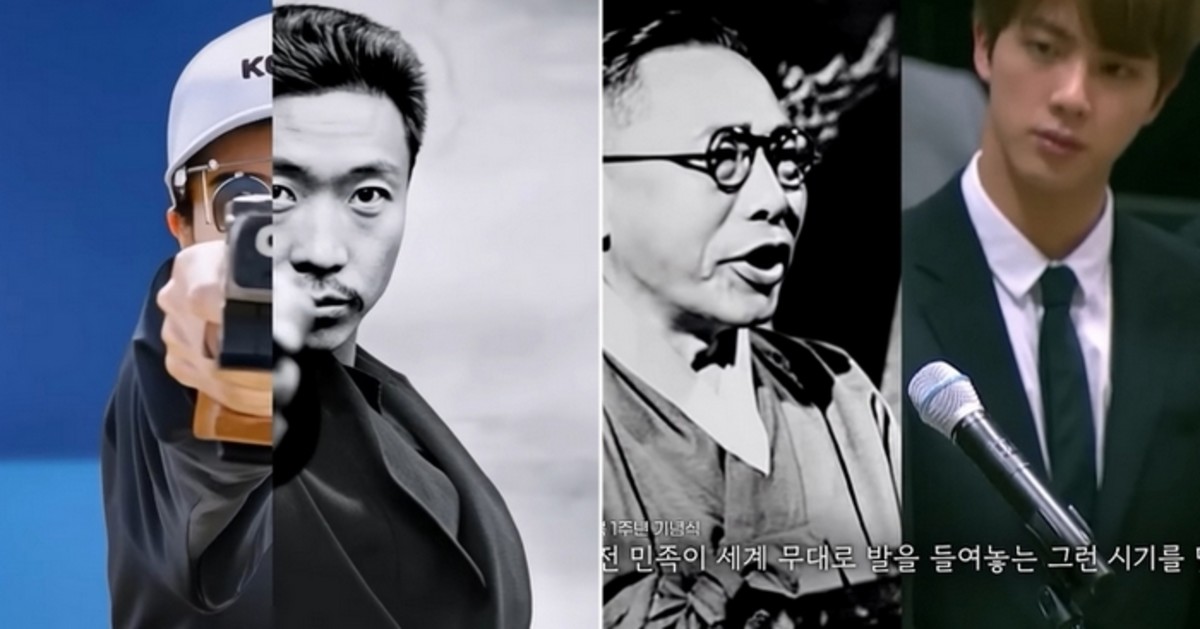 광복 1주년 기념식에서 김구 선생이 "우리 전 민족이 세계 무대로 발을 들여놓는 그런 시기를 맞았습니다"라고 연설하는 장면은 방탄소년단(BTS) 리더 RM이 2018년 UN 연설에서 "자 그러면 우리 모두 한 걸음 더 나아가 봅시다"라고 말하는 장면으로 이어져 눈길을 끌었다.