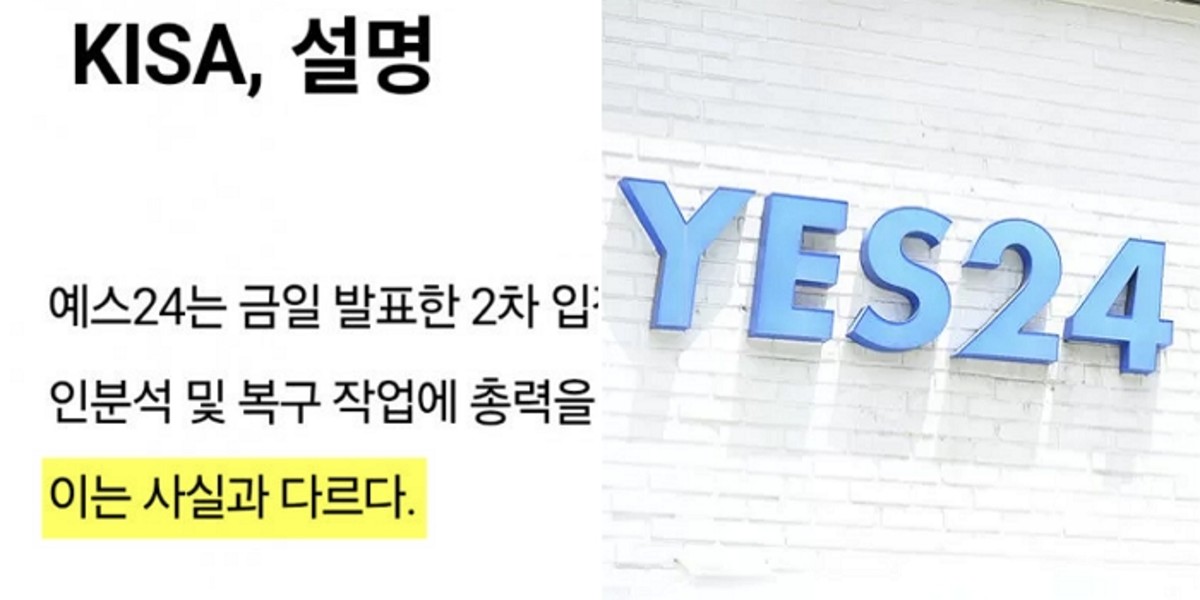 지난 12일 한국인터넷진흥원(KISA)은 "예스24의 발표 내용 중 사실과 다른 부분이 있다"고 공식 반박했다.