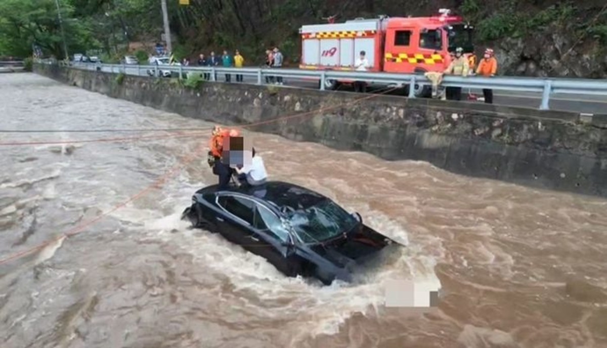 경북 청송군 청송읍 부곡리 괘천에서 급류에 휩쓸린 차량 위에서 위기에 처한 30대 여성과 9살 딸이 소방대원들의 신속한 구조 작업으로 무사히 구조됐다.