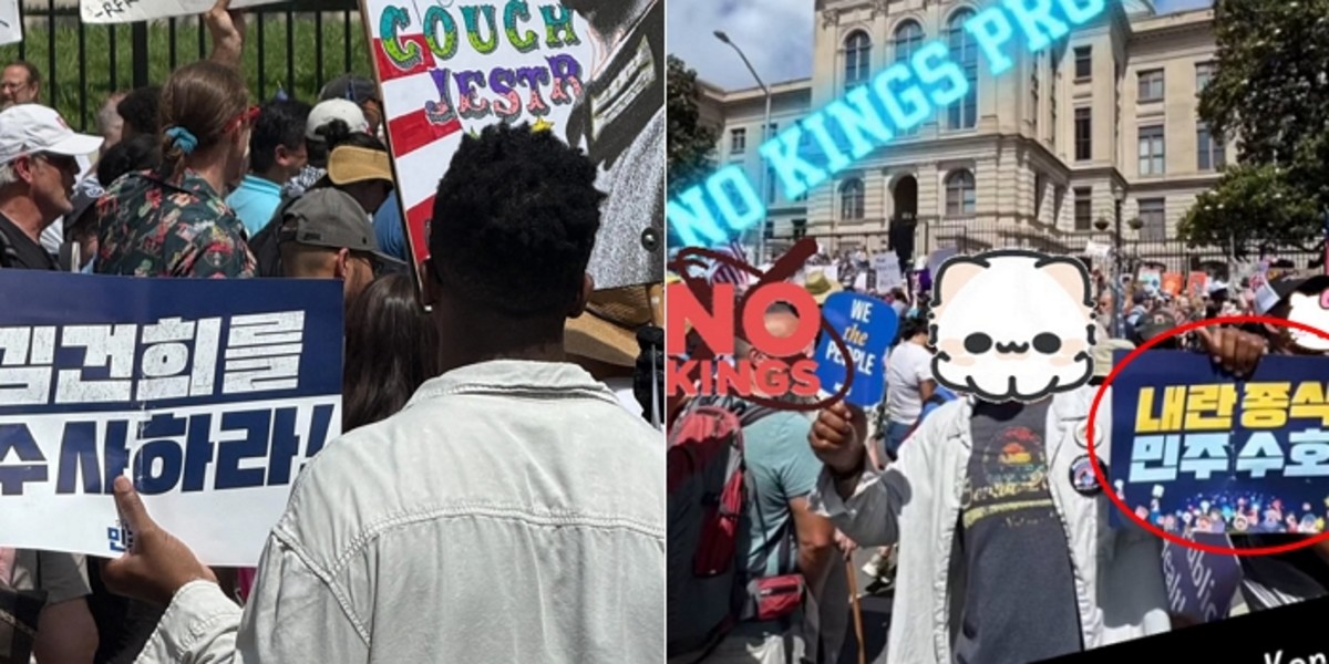 미국 반 트럼프 시위에 등장한 '김건희를 수사하라' 피켓... 알고 보니