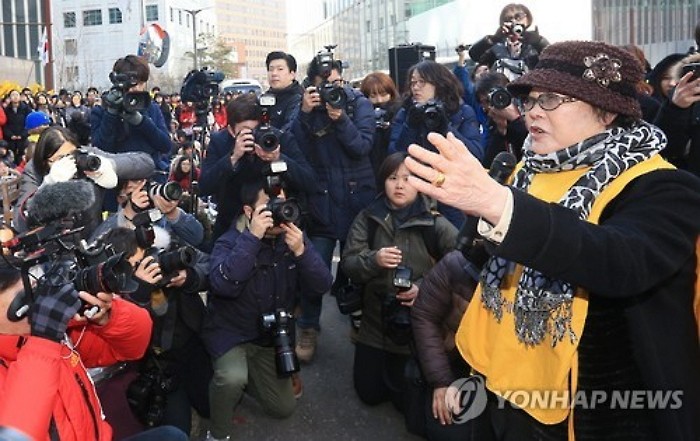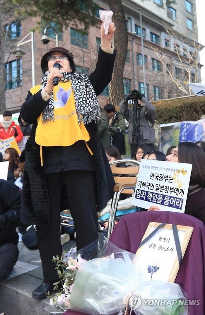 일본군 위안부 피해자인 이용수(89) 할머니는 추운 날씨에도 불구하고 최 할머니를 그리워하며 수요 집회에 참석했다.