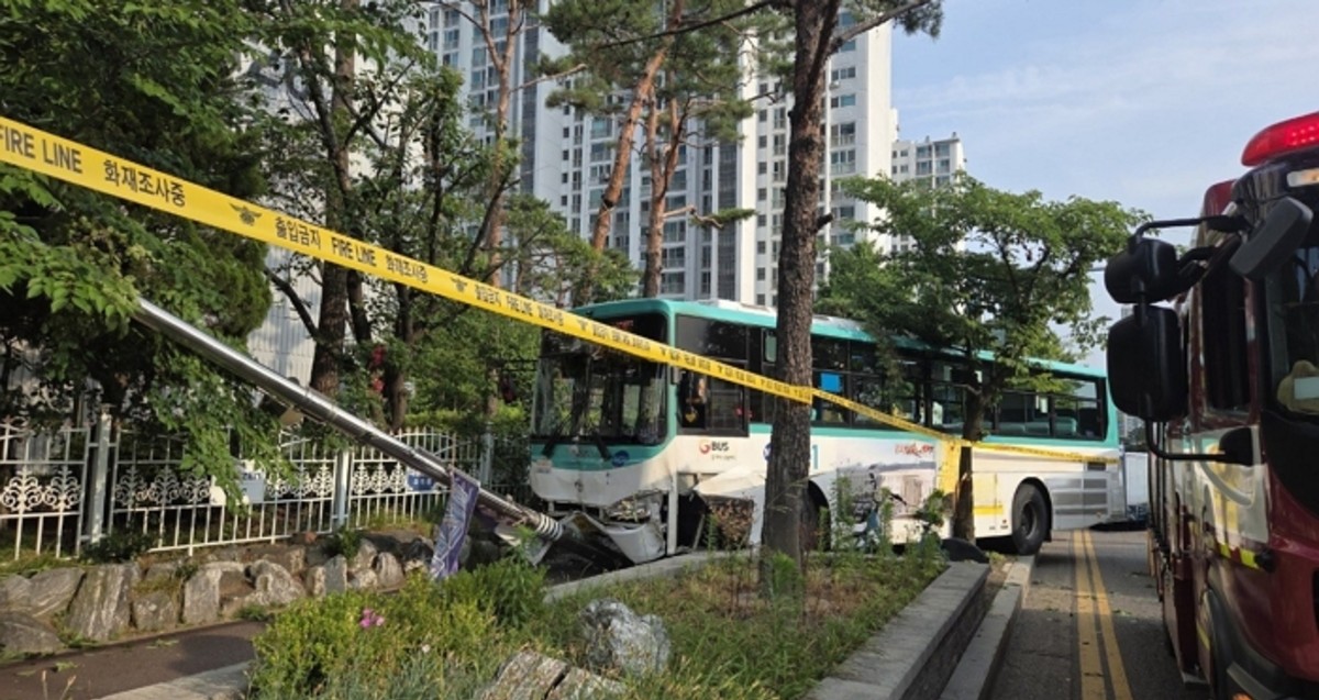 경기도 부천시 원미구에서 시내버스가 인도로 돌진해 가로등을 충돌하는 사고가 발생했다.