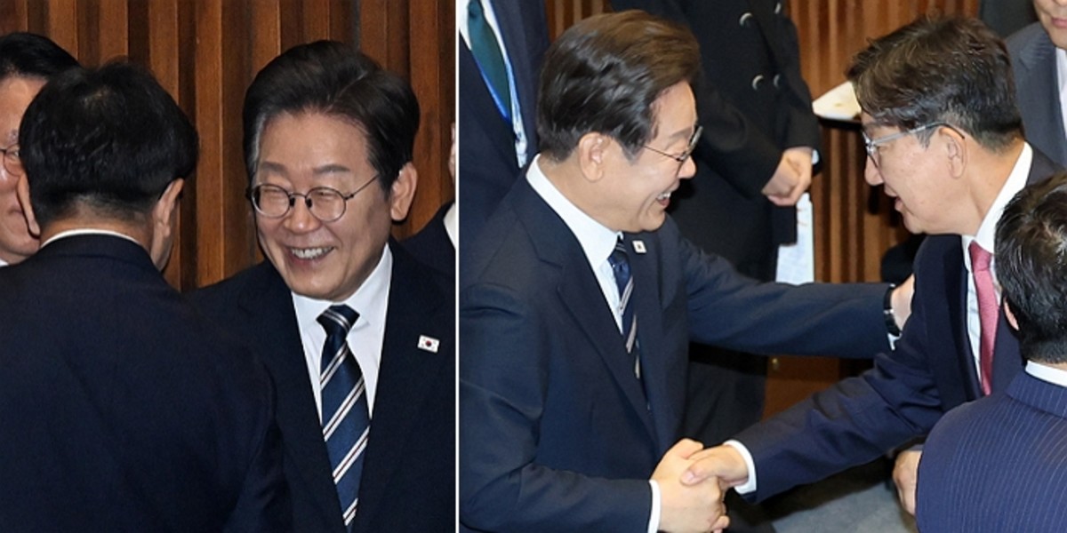 추가경정예산안(추경) 시정연설을 위해 국회를 찾은 이재명 대통령이 권성동 국민의힘 의원과 짧은 대화를 나눈 장면이 포착됐다.