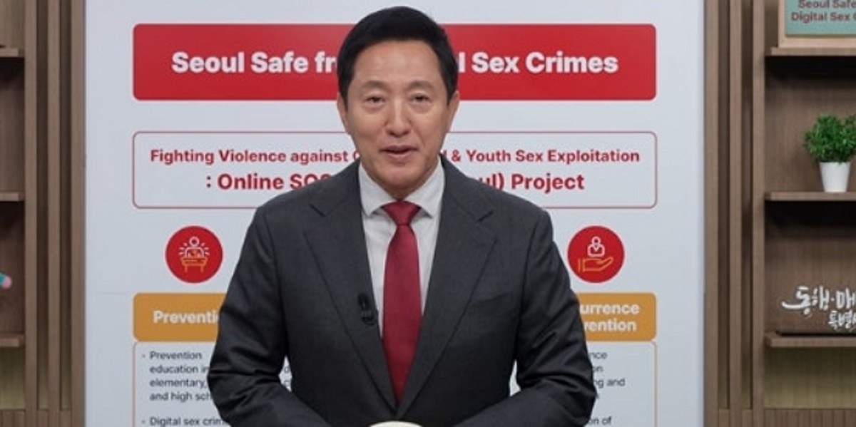 오세훈 서울시장이 '글로벌 메이어스 챌린지'에서 서울시의 '아동·청소년 디지털 성범죄 통합 대응 정책'을 영상으로 소개했다. / 사진=서울시