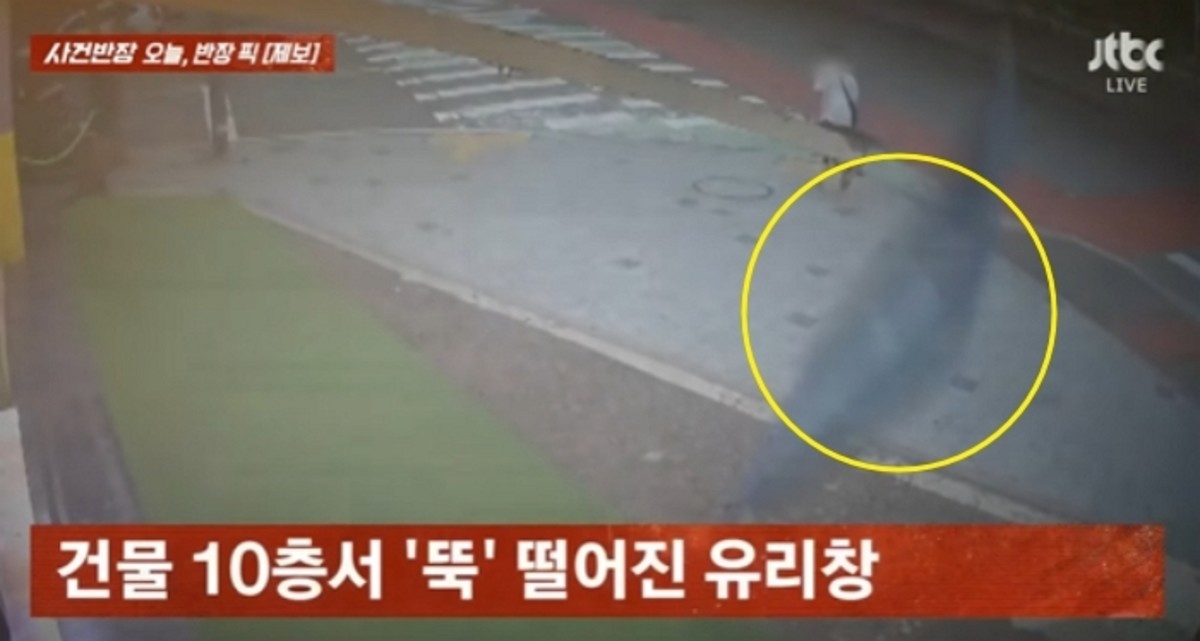 지난 26일 JTBC '사건반장' 보도에 따르면, 지난 13일 저녁 해당 건물 10층에서 유리창이 인도로 떨어져 행인들이 아찔한 상황에 노출됐다.