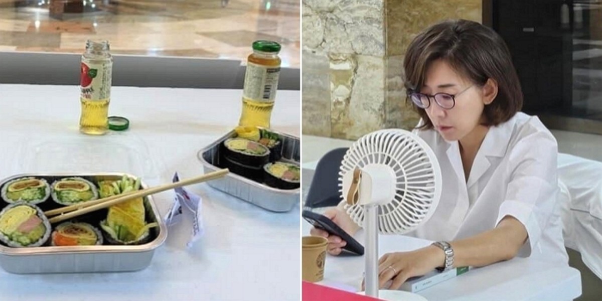 청바지·반소매 셔츠 차림... 선풍기·음료 사진에 논란
