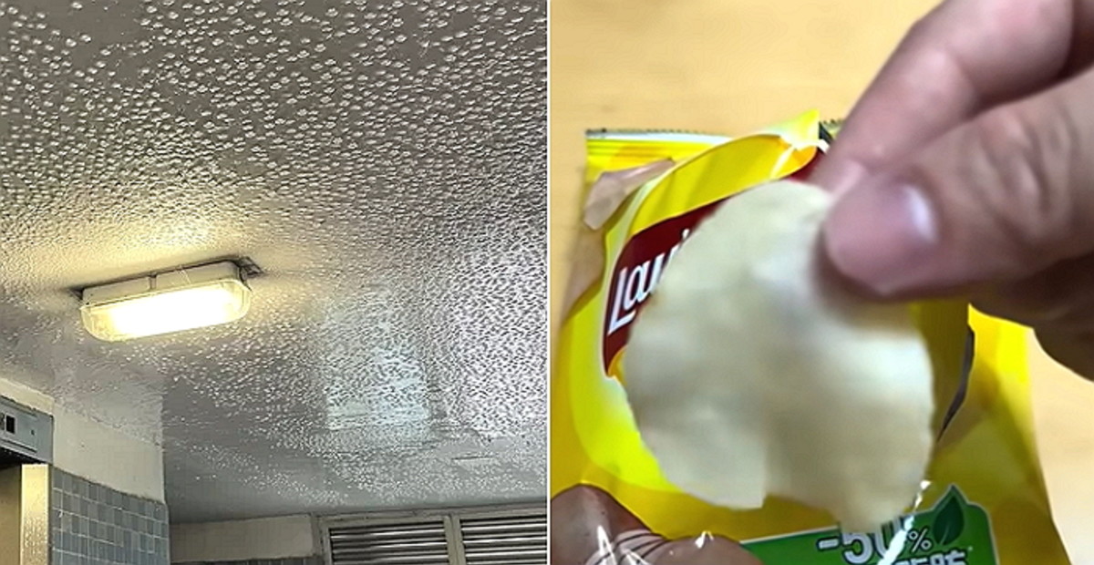 영상 속 집 안에서는 감자칩이 수분을 머금고 종잇장처럼 휘날리며, 벽에는 물기가 송골송골 맺혀 있다.