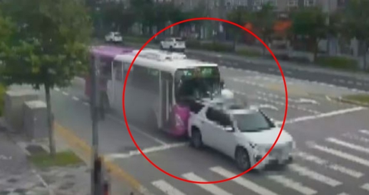 지난달 교차로 신호대기 중이던 SUV를 들이받은 버스는 충격에도 불구하고 해당 차량을 밀고 그대로 도주했으며, 버스 기사는 뺑소니 혐의로 경찰에 입건됐다.