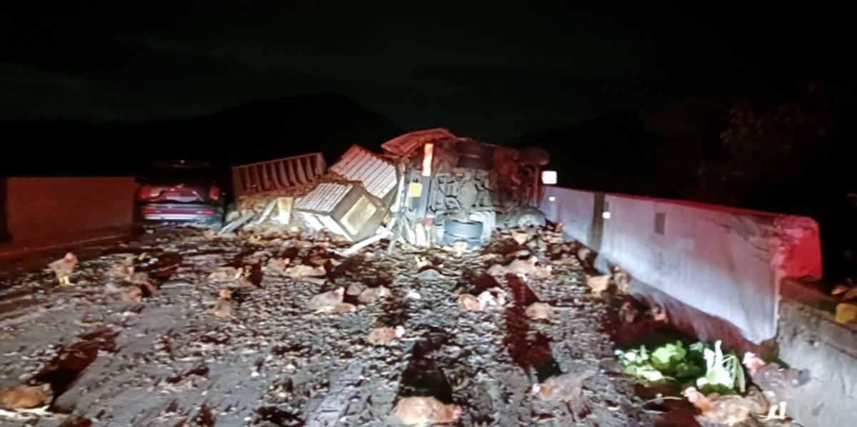 중부내륙고속도로 화물차 추돌사고, 닭 수십 마리 도로 위로 쏟아져