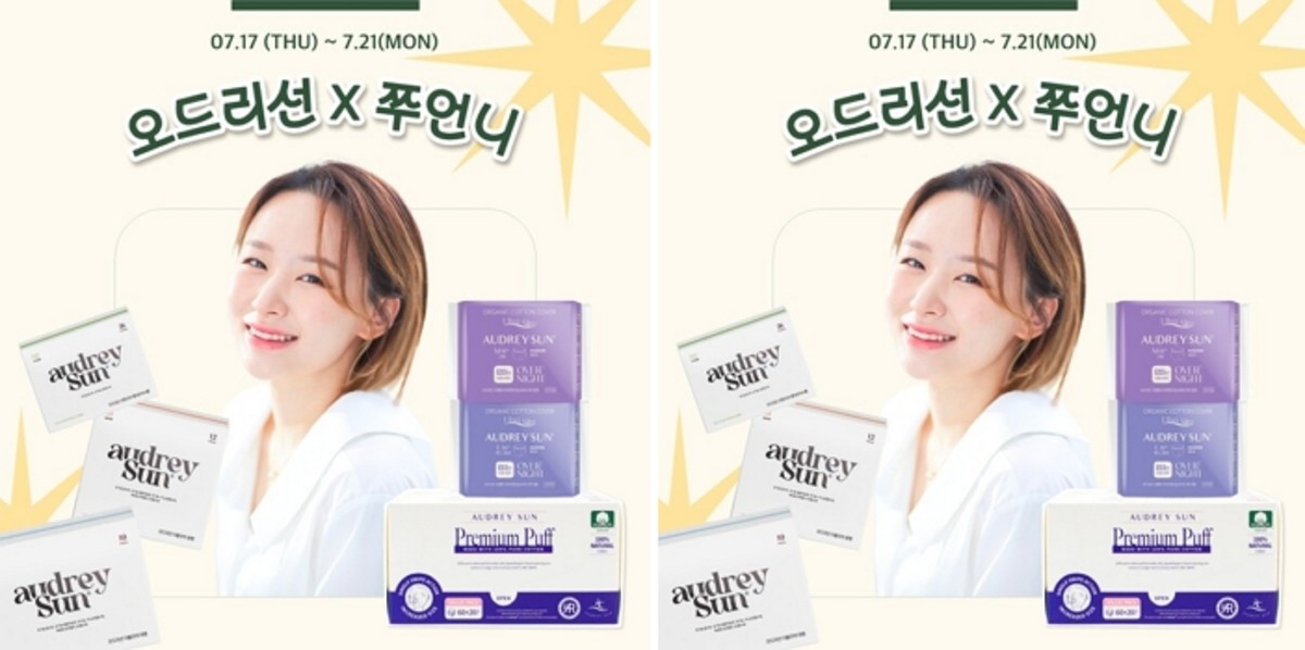 유기농 순면 생리대 브랜드 브랜드 오드리선이 17일, 오후 8시부터 1시간 동안 인기 뷰티 크리에이터 쭈언니와 함께 네이버 쇼핑라이브를 진행합니다.