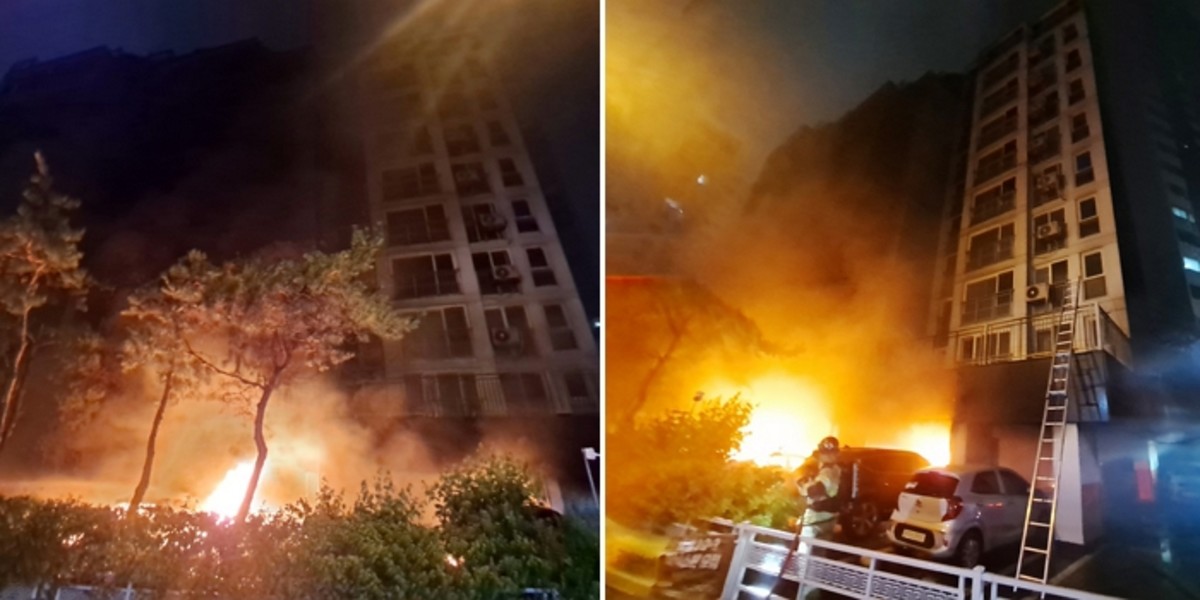 주차장에서 화재가 발생한 광명 아파트 / 경기도소방재난본부