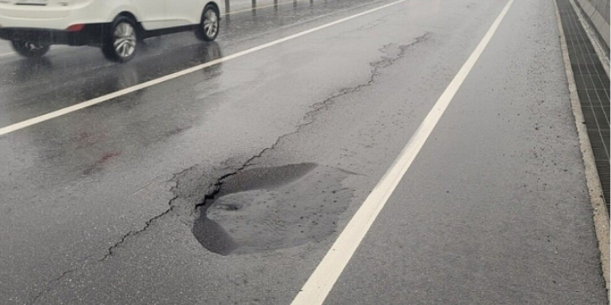 사진 속 도로는 금방이라도 꺼질 것처럼 심각하게 훼손된 상태였습니다.