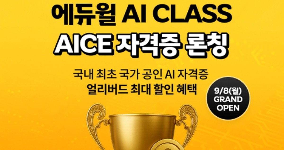 교육 전문기업 에듀윌이 국내 최초로 국가공인을 받은 인공지능 자격시험 'AICE Associate' 대비 온라인 강의를 출시하며 대규모 론칭 이벤트를 진행한다고 21일 발표했습니다.