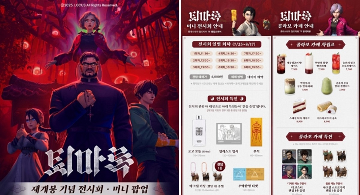 이번 <퇴마록> 극장판 프로모션 전시와 굿즈 팝업, 다양한 이벤트는 오는 7월 25일부터 8월 17일까지 롯데시네마 월드타워에서 진행되며, 자세한 내용은 롯데시네마 이벤트 페이지에서 확인할 수 있습니다.