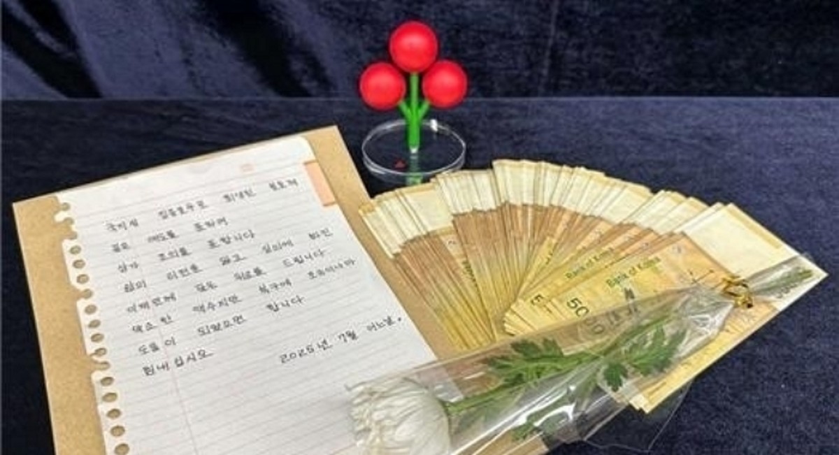 "국지성 집중호우로 희생된 분들께 깊은 애도를 표하며 삼가 조의를 표합니다. 삶의 터전을 잃고 실의에 빠진 이재민께 깊은 위로를 드립니다. 약소한 액수지만 복구에 조금이나마 도움이 되었으면 좋겠습니다. 힘내십시오. 2025년 7월 어느날"