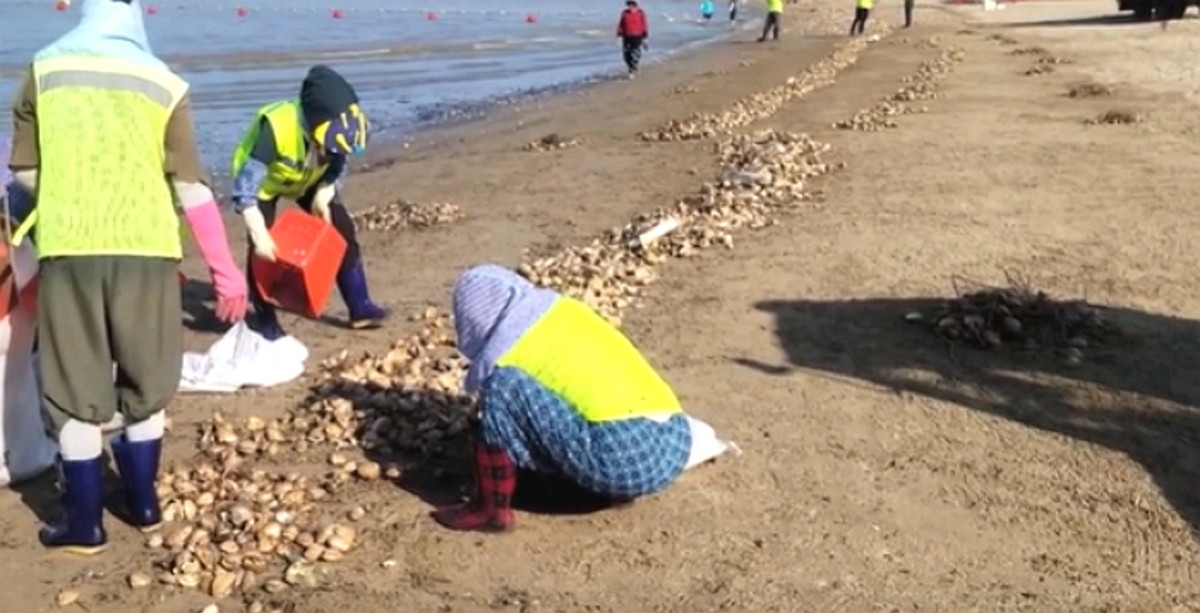 맛 좋기로 유명한 조개가 해안선을 따라 입을 벌린 채 폐사한 부산 한 해수욕장. 무슨 일이 있었던 걸까요.