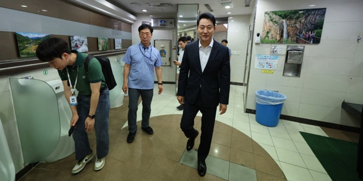 오 시장은 남자 화장실에 들어가 화변기와 양변기 상태를 꼼꼼히 살펴보는 모습을 보였는데요.