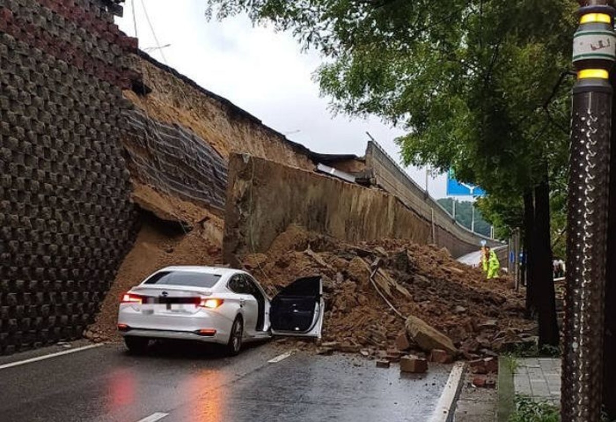 이러한 지적에도 이뤄지지 않은 옹벽 보수가 끔찍한 사고를 초래한 걸까요. 옹벽 붕괴 사고 당시 현장 모습이 담긴 차량 블랙박스 영상에는 상부의 L형 옹벽과 하부의 보강토 옹벽 이음새 부분이 터져나가는 모습이 확인됐습니다.