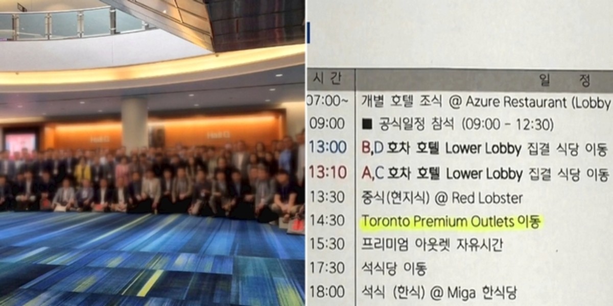 취재가 시작되자 참석자 중 상당수는 "나이아가라 폭포는 가지 않았다"며 관광 일정 참여를 부인했지만, 입수된 비공개 일정표와 관계자들의 증언은 이와 상반됩니다.