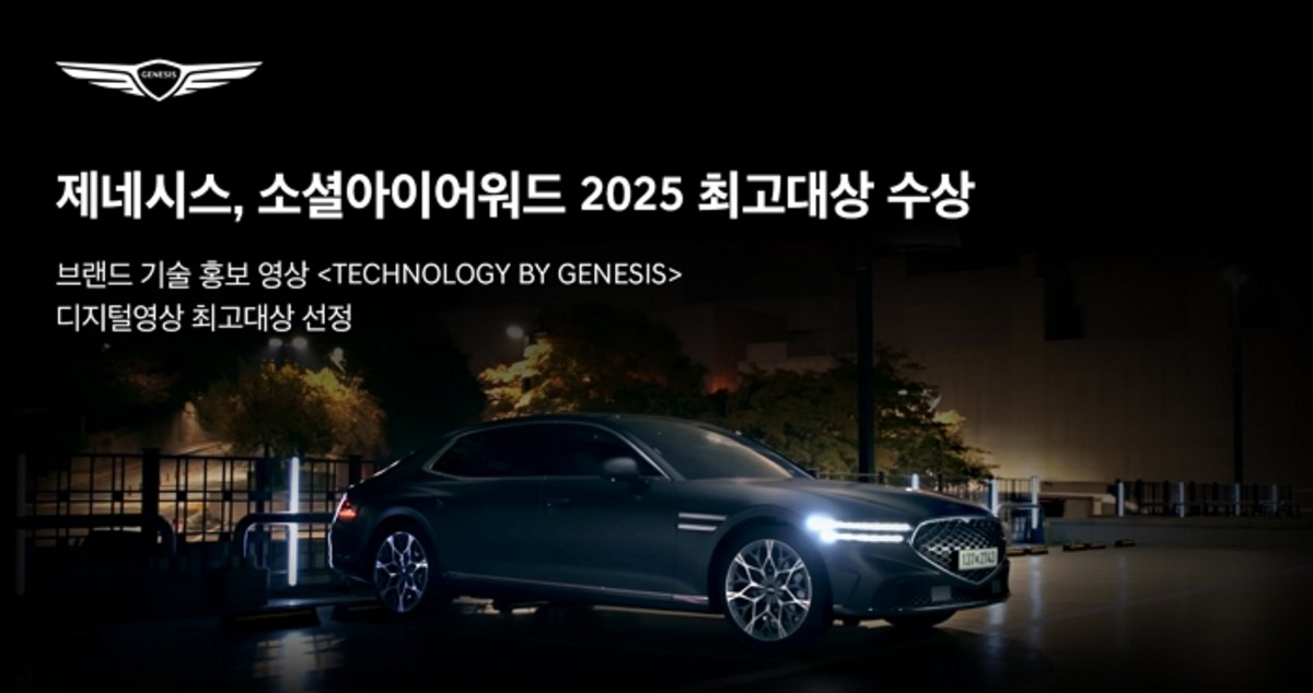 제네시스는 지난 24일 서울 양재 엘타워 그랜드홀에서 개최된 '소셜아이어워드 2025'에서 '테크놀로지 바이 제네시스' 영상으로 '디지털영상 최고대상'을 수상했다고 발표했습니다.